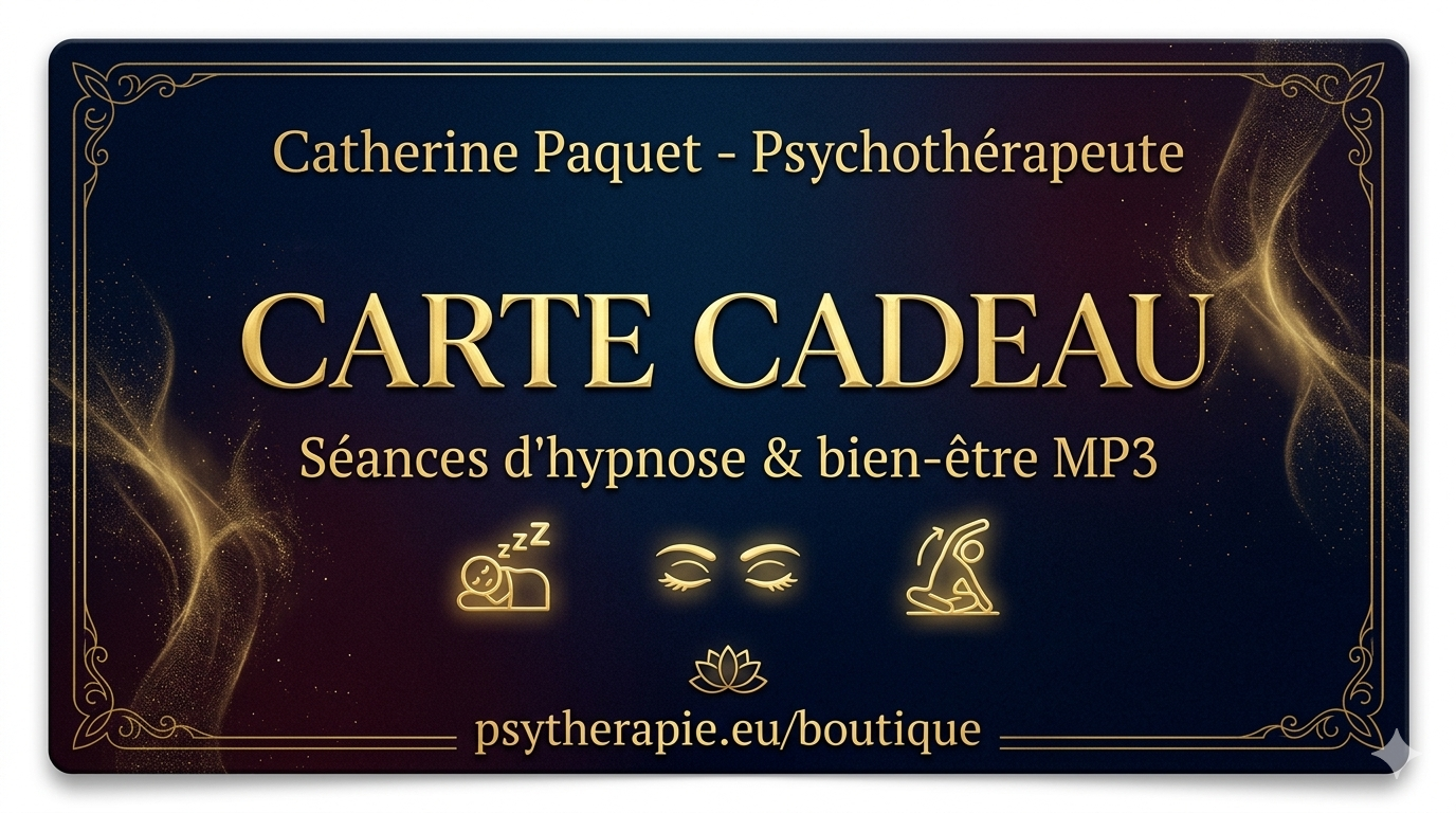 Cette carte cadeau lui permet de choisir librement parmi mes séances d’hypnose et de relaxation MP3 — à télécharger immédiatement, à écouter sans connexion et sans publicité, où qu’il soit.